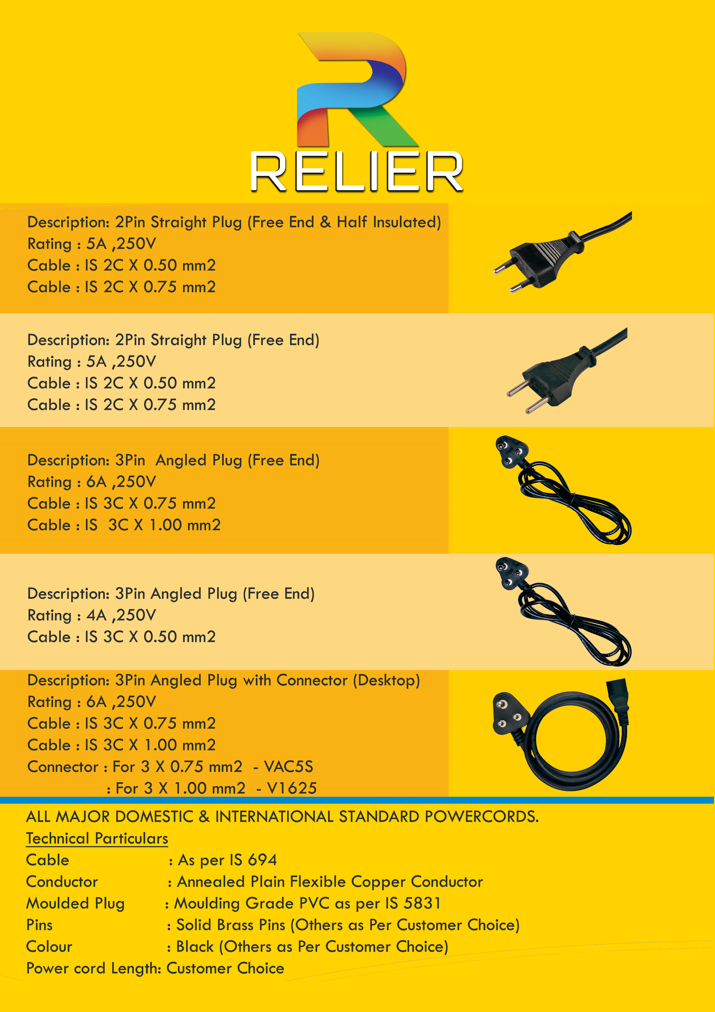 Relier Technologies is a leading global producer of electrical power cords. The company currently operates Pondicherry with two sales and support offices located strategically in Pondicherry Tamilnadu.
